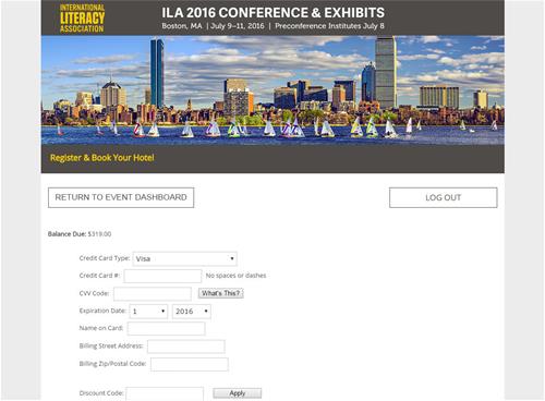 Now it’s time to add your hotel reservation (if you haven’t already), or check out only for the ILA 2016 Conference. You can also review your badge here.