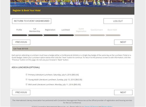 Now you’ll be able to choose if you want to register for the ILA 2016 Conference or book your hotel room. It doesn’t matter which you opt for first; you’ll be able to add the other now or later.